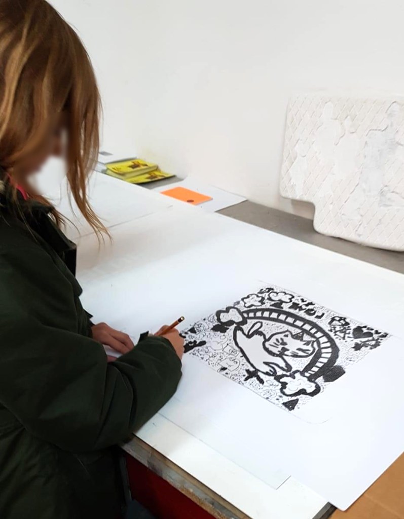 I have extensive experience working with children. I am a qualified teacher with pedagogical preparation and the degree of certified teacher. During the classes, I combine learning lithographic techniques with activities developing artistic sensitivity and lectures on art history.